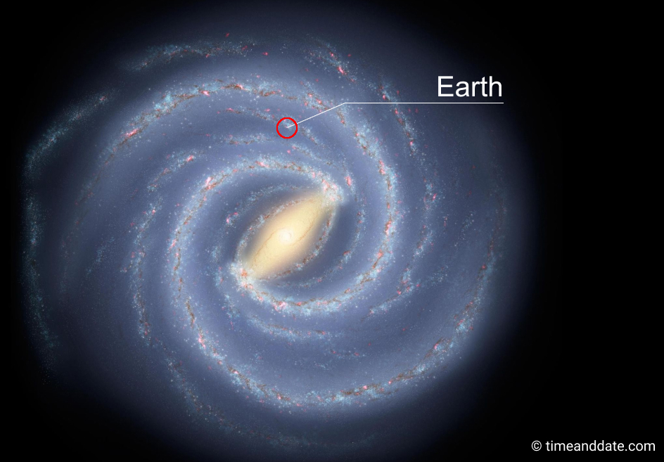 This is a render of what our galaxy *probably* looks like. Nobody's been able to send a probe out of it and take a picture. Our galaxy is about 100,000 light years across. Estimates put the number of stars in it at between 100 billion and 400 billion.